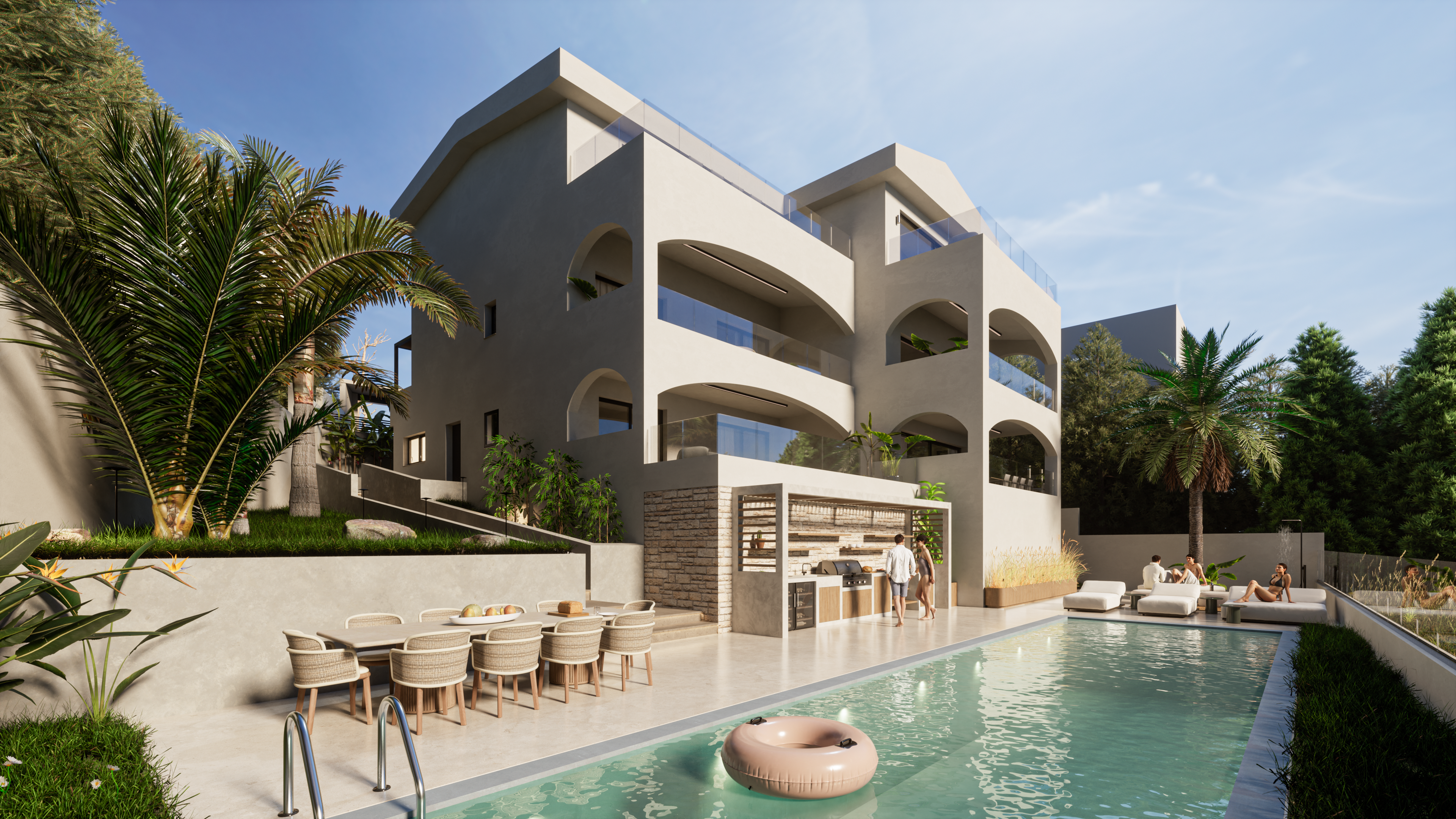- A luxury hotel and private villas